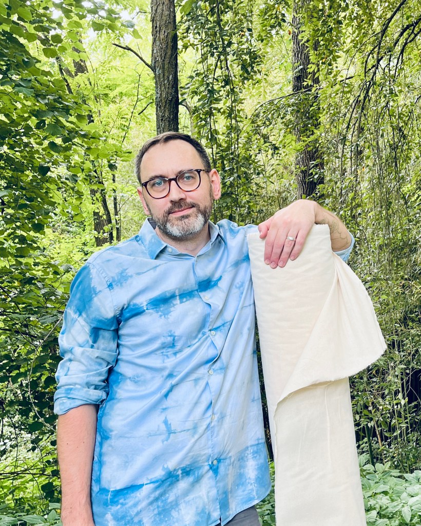 My work often focuses on sustainable materials: naturally-dyed paper and fabric, antique book pages, secondhand thread, and organic cotton muslin. While the “finished” work may appear simple, the individual materials that I use in my work often involve a long process of dyeing, ageing, and printing with natural materials and processes.